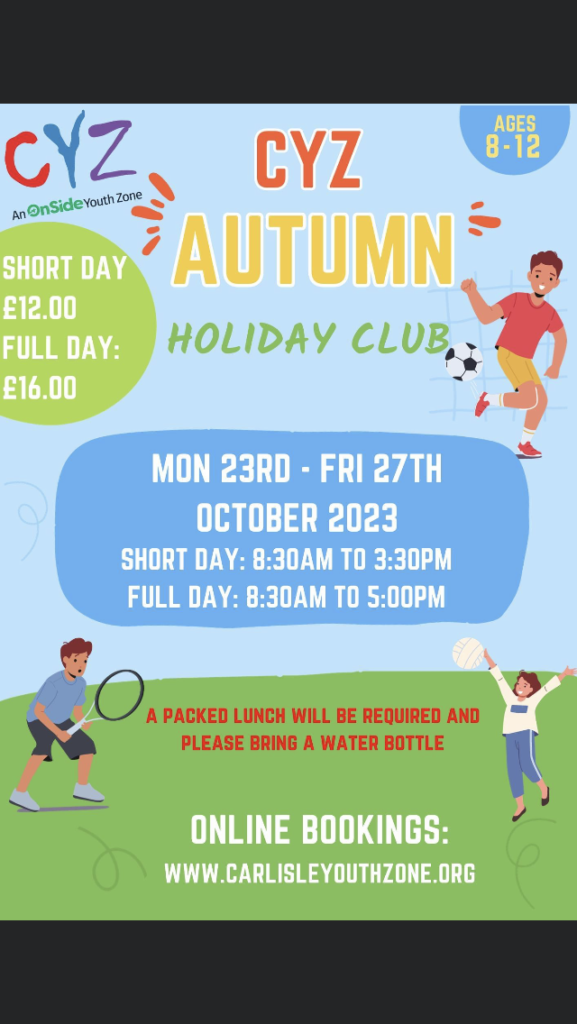 If you need childcare support during the autumn holidays then why not join CYZ’s holiday club. Both half and full days available.
